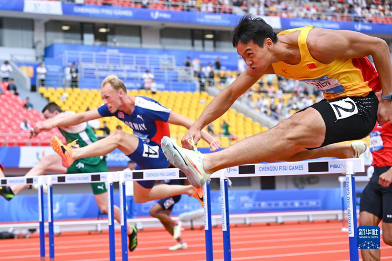 8月3日,中國選手陳業(yè)森(右)在男子十項全能110米欄比賽中。新華社記者 王曦 攝