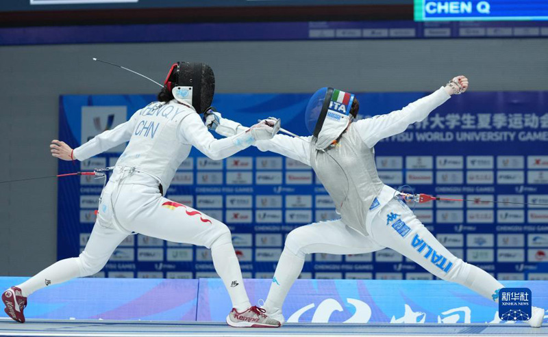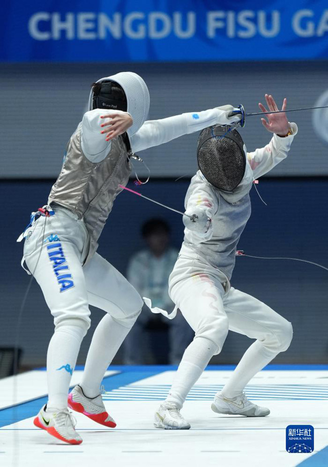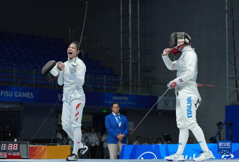 當(dāng)日,在成都舉行的第31屆世界大學(xué)生夏季運(yùn)動(dòng)會(huì)擊劍女子花劍團(tuán)體金牌賽中,中國(guó)隊(duì)以45比22戰(zhàn)勝意大利隊(duì),獲得金牌。