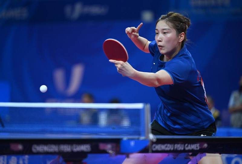 新華社成都8月5日電(記者楊帆、羅羽)5日,成都大運(yùn)會(huì)乒乓球項(xiàng)目迎來(lái)收官日。女單決賽中國(guó)隊(duì)錢天一苦戰(zhàn)七局戰(zhàn)勝日本隊(duì)出澤杏佳摘金,男單決賽中國(guó)隊(duì)周愷戰(zhàn)勝隊(duì)友徐瑛彬奪冠。