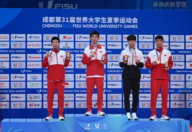 至此,本屆大運(yùn)會(huì)乒乓球項(xiàng)目在成都市高新體育中心體育館完賽,8天時(shí)間內(nèi)共產(chǎn)生7枚金牌。