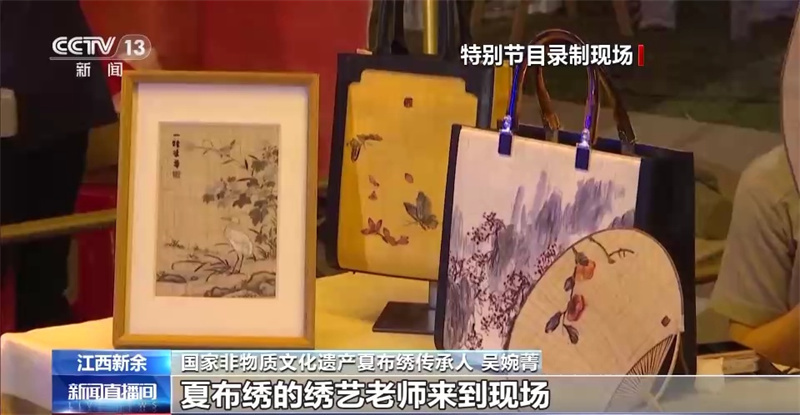 國家非物質(zhì)文化遺產(chǎn)夏布繡傳承人 吳婉菁:“七夕”也是乞巧節(jié),所以很多夏布繡的繡藝老師也到現(xiàn)場,可以讓更多的朋友能夠看到新余的非遺,讓更多的年輕人去了解我們的國潮非遺。