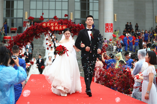 一項(xiàng)項(xiàng)儀式,將集體婚禮活動(dòng)引向高潮。此次參加集體婚禮的航天工作者大多來自一線崗位,他們常年執(zhí)行高密度航天發(fā)射任務(wù),缺少時(shí)間與愛人團(tuán)聚,有的婚期更是一再推遲。中心為一對對新人搭建起盛大的舞臺(tái),舉辦隆重的集體婚禮,讓祖國見證他們的幸福與榮光。