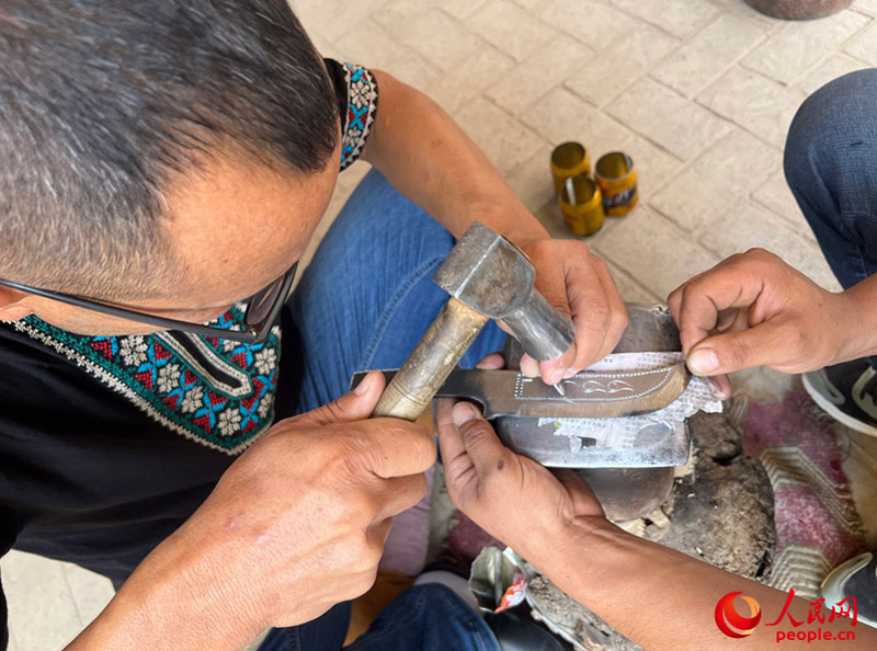 手工制作英吉沙小刀。人民網(wǎng)記者 常雪梅攝