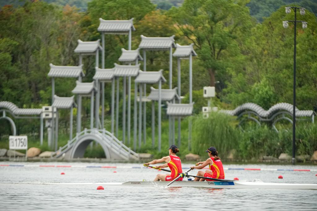 9月20日,杭州亞運(yùn)會賽艇項目預(yù)賽比賽在浙江省杭州市富陽水上運(yùn)動中心開賽。新華社記者 江漢 攝