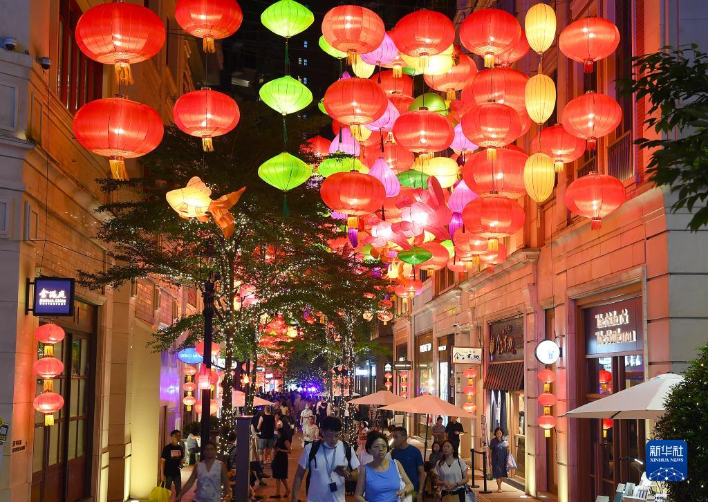 為迎接中秋佳節(jié)的到來(lái),香港利東街舉辦“躍兔·迎月”戶外彩燈會(huì)。約200米長(zhǎng)的林蔭大道懸掛起800多個(gè)五彩繽紛的中式燈籠,營(yíng)造出喜慶的佳節(jié)氣氛。