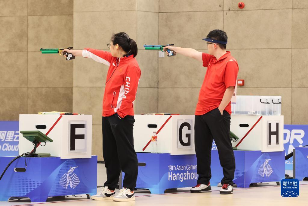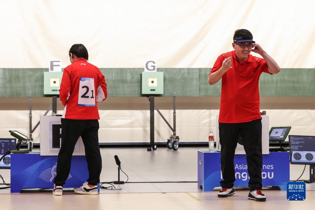 當日,在杭州富陽銀湖體育中心舉行的杭州亞運會射擊項目混合團體10米氣手槍決賽中,中國組合張博文/姜冉馨以16比14戰(zhàn)勝印度組合薩拉布喬特·辛格/迪維婭·塔迪戈爾·蘇巴拉朱,奪得冠軍。