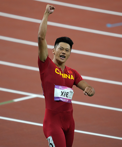 中國選手謝震業(yè)以9秒97的成績(jī)撞線奪冠
