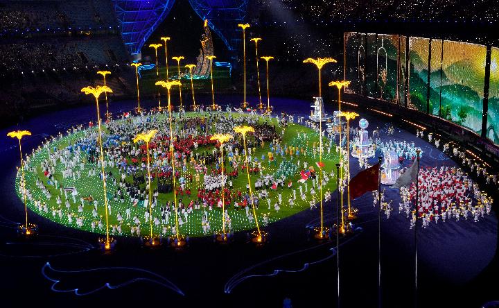 閉幕式當(dāng)晚,“大蓮花”造型的杭州奧體中心體育場內(nèi),童聲伴隨百花綻放、金桂留香,湖水漣漪的水墨畫卷,時而幻化為連通古今的古橋,時而躍現(xiàn)成青山飛鳥的江南美景……閉幕式充滿東方美學(xué)的巧思,呈現(xiàn)中國文化的豐富內(nèi)涵。