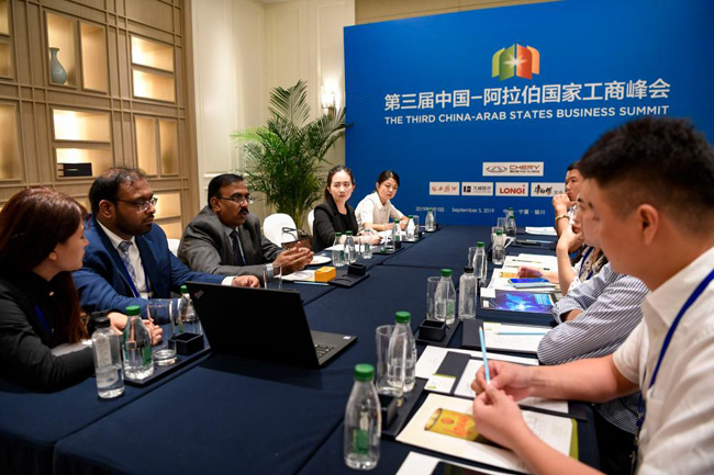 2019年9月5日,迪拜工商會(huì)代表與中方代表在第四屆中國-阿拉伯國家博覽會(huì)期間進(jìn)行洽談。新華社記者馮開華攝