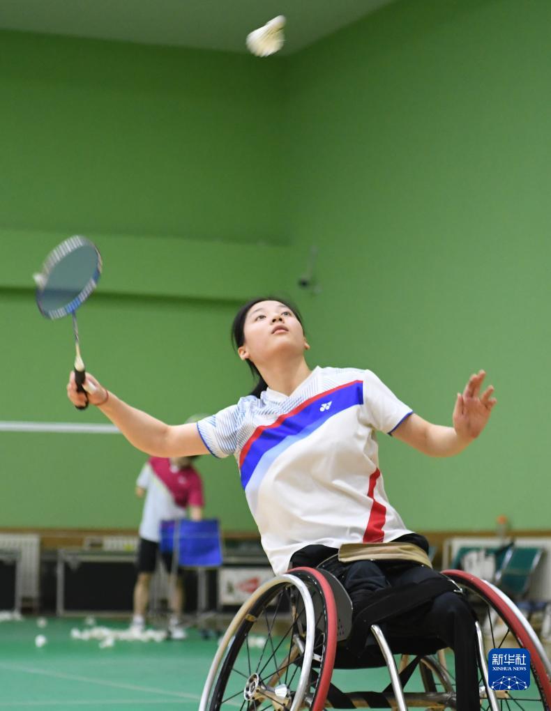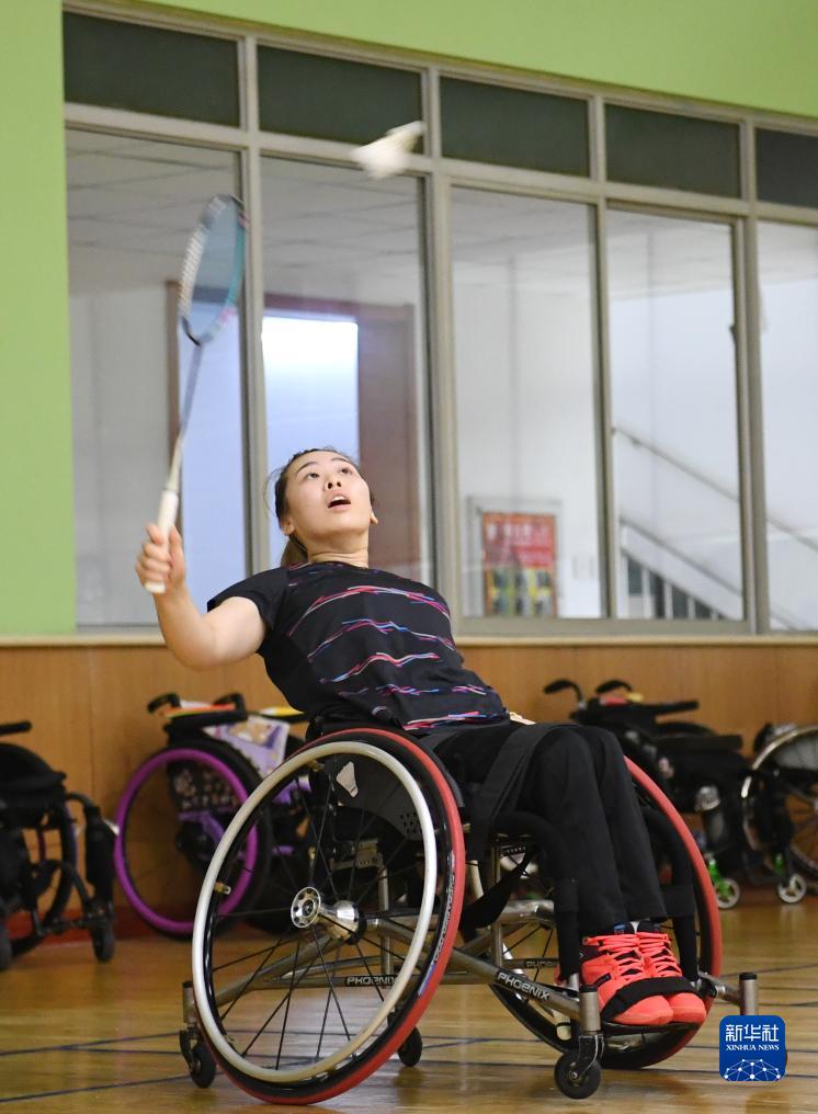 9月12日,中國(guó)殘疾人羽毛球隊(duì)運(yùn)動(dòng)員屈子墨在訓(xùn)練中。新華社記者 朱旭東 攝