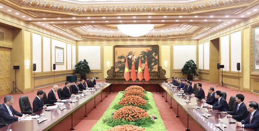 10月20日上午,國家主席習(xí)近平在北京人民大會堂會見來華出席第三屆“一帶一路”國際合作高峰論壇的越南國家主席武文賞。