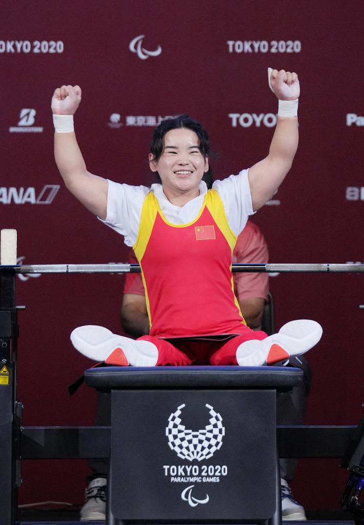 2021年8月26日,在東京殘奧會(huì)舉重女子41公斤級(jí)比賽中,中國選手郭玲玲奪得金牌,并以109公斤的成績(jī)打破世界紀(jì)錄。新華社記者才揚(yáng)攝