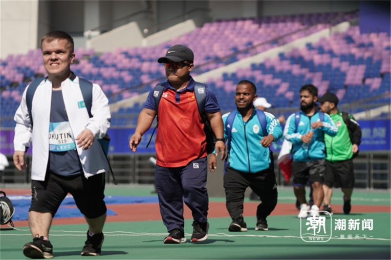 參加杭州亞殘運會田徑男子標槍F41級的是7位身高均不到1米4的選手,他們背包魚貫而入黃龍體育場的時候,好像一支快樂的小分隊,場景瞬間切換進了童話王國。