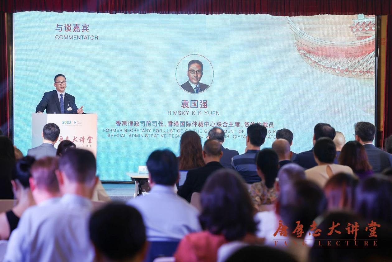 隨后,香港律政司前司長袁國強(qiáng)作為與談人發(fā)言。他從微觀和宏觀兩個視角對王軼教授的演講進(jìn)行了回應(yīng)。在微觀上,他提出在數(shù)據(jù)屬性、數(shù)據(jù)利益的分配以及涉數(shù)據(jù)問題的法律規(guī)范類型等問題上,尚待進(jìn)一步研究;在宏觀上,數(shù)據(jù)和先進(jìn)科技的關(guān)系也值得深思,亟需研究科技將如何影響爭議解決進(jìn)而影響公正。