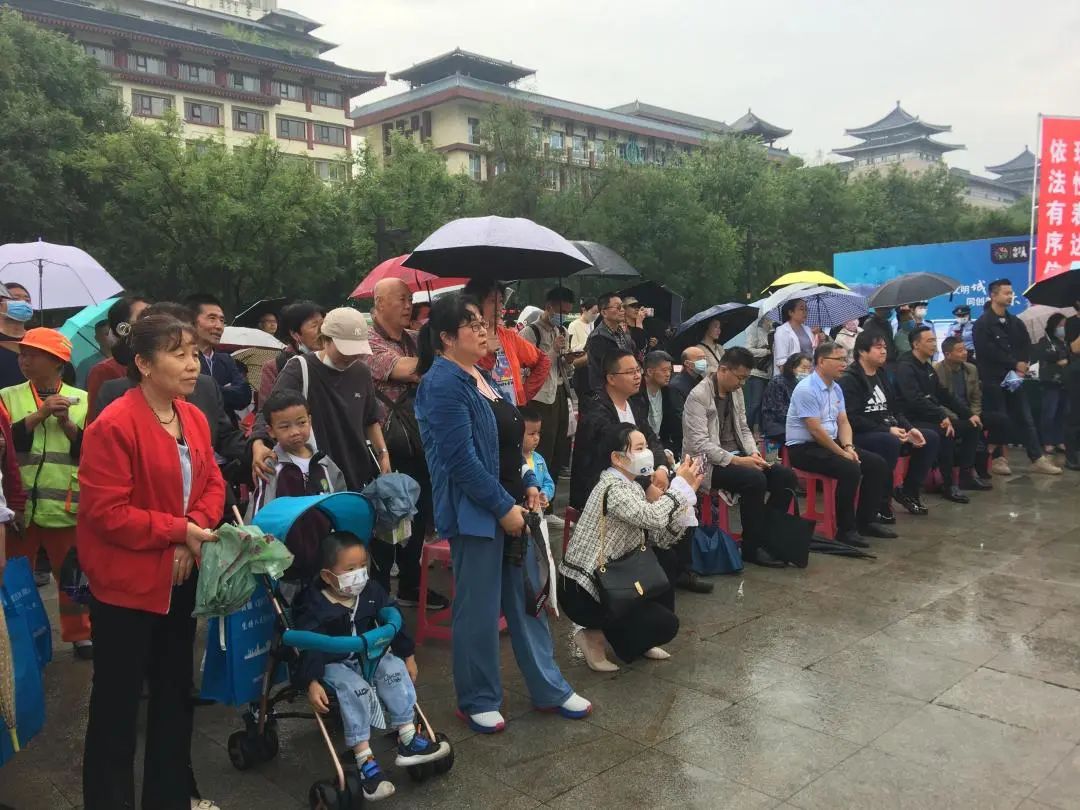 活動中,陰雨綿綿,但絲毫不影響現(xiàn)場熱烈的氣氛。啟動儀式上,恢弘大氣的《盛世鼓舞》《仿唐樂舞》美不勝收,朗朗上口的快板《說信訪》,重點(diǎn)突出宣傳《條例》,接地氣的表演博得了在場群眾陣陣掌聲。