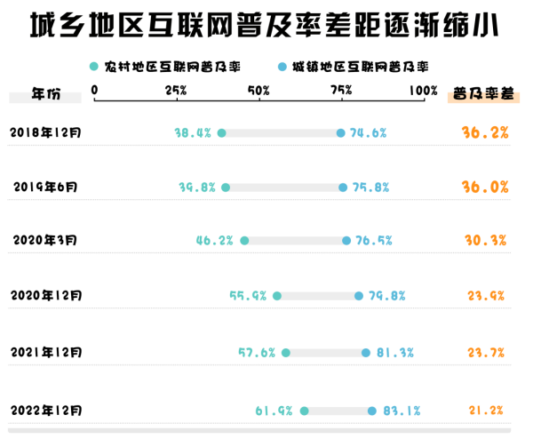 4.城鄉(xiāng)地區(qū)互聯(lián)網(wǎng)普及率差距逐漸縮小