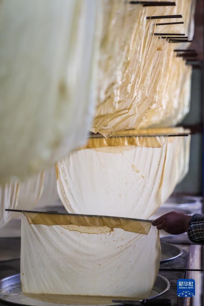 春節(jié)臨近,浙江省諸暨市安華鎮(zhèn)的傳統(tǒng)年貨——豆腐皮迎來銷售旺季。村民加緊制作豆腐皮,供應節(jié)日市場。