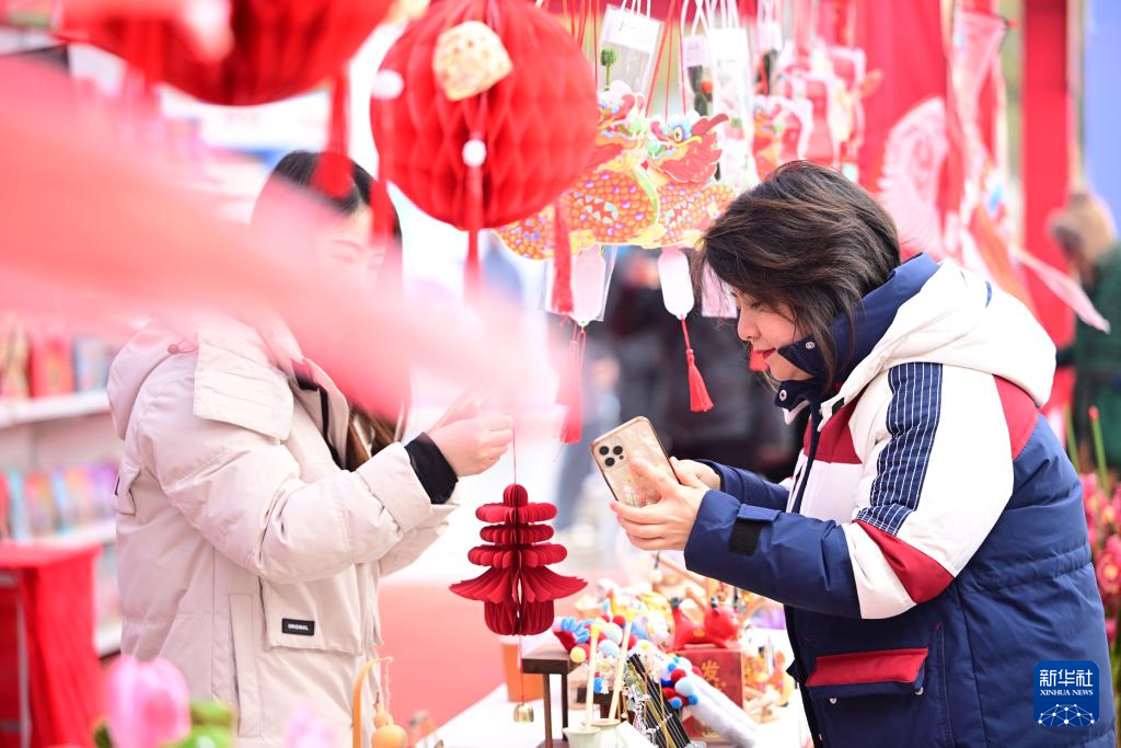 1月20日,人們?cè)诤笔∠尻?yáng)市樊城區(qū)國(guó)際商貿(mào)城挑選春節(jié)飾品。新華社發(fā)(謝勇攝)