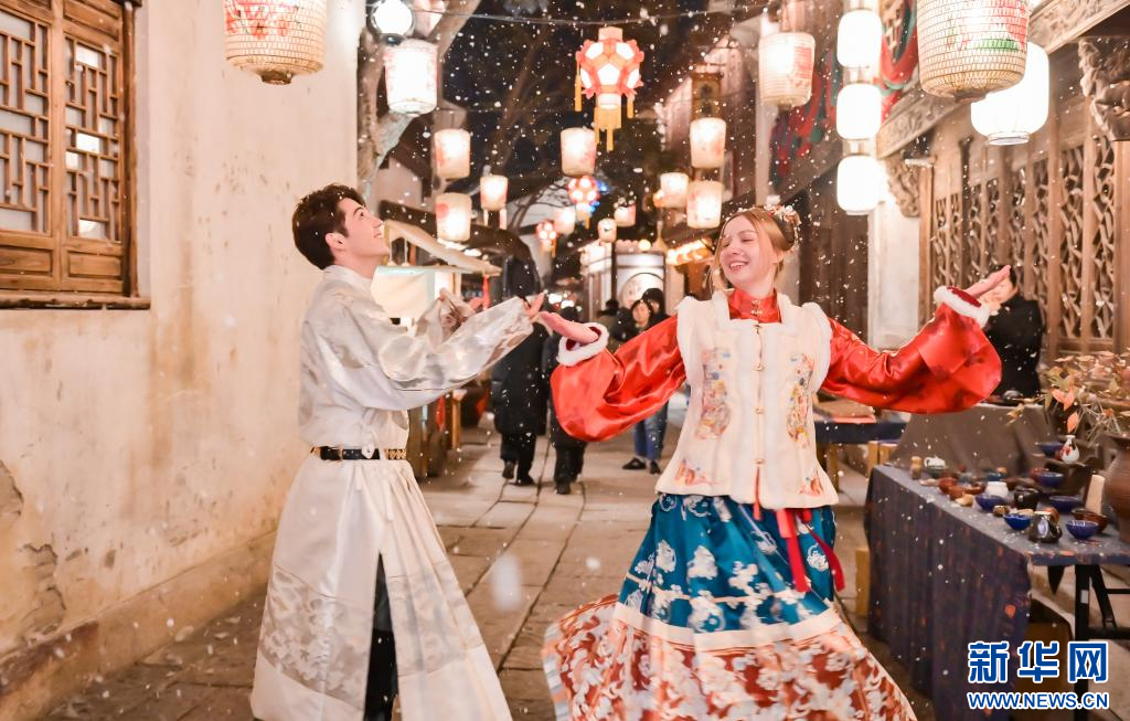 北橫街開(kāi)啟“今日有雪”活動(dòng)。新華網(wǎng)發(fā) 濮院時(shí)尚古鎮(zhèn)供圖