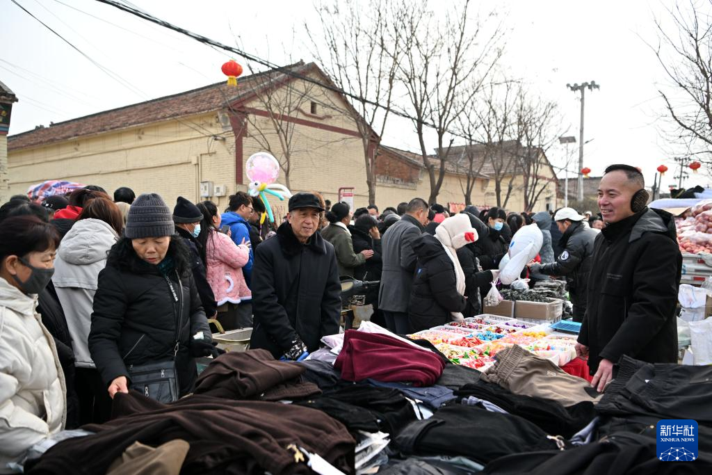 臘月里,天津市武清區(qū)泗村店鎮(zhèn)太子務(wù)大集十分熱鬧,傳統(tǒng)年貨、特色小吃、文藝演出等吸引了周邊村鎮(zhèn)的人們前往趕集,迎接新春佳節(jié)。