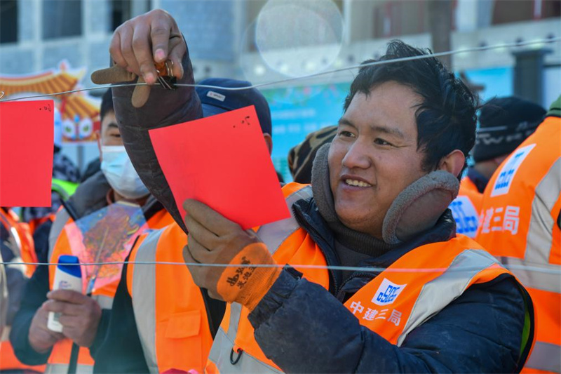近日,中建三局濟(jì)南市醫(yī)療康養(yǎng)綜合服務(wù)基地建設(shè)項(xiàng)目部舉辦“情系農(nóng)民工 溫暖迎新春”活動(dòng),將新春集市搬進(jìn)項(xiàng)目部,工友們?cè)诂F(xiàn)場(chǎng)體驗(yàn)了剪紙、皮影戲、品嘗年貨等活動(dòng),提前感受別樣的年味。
