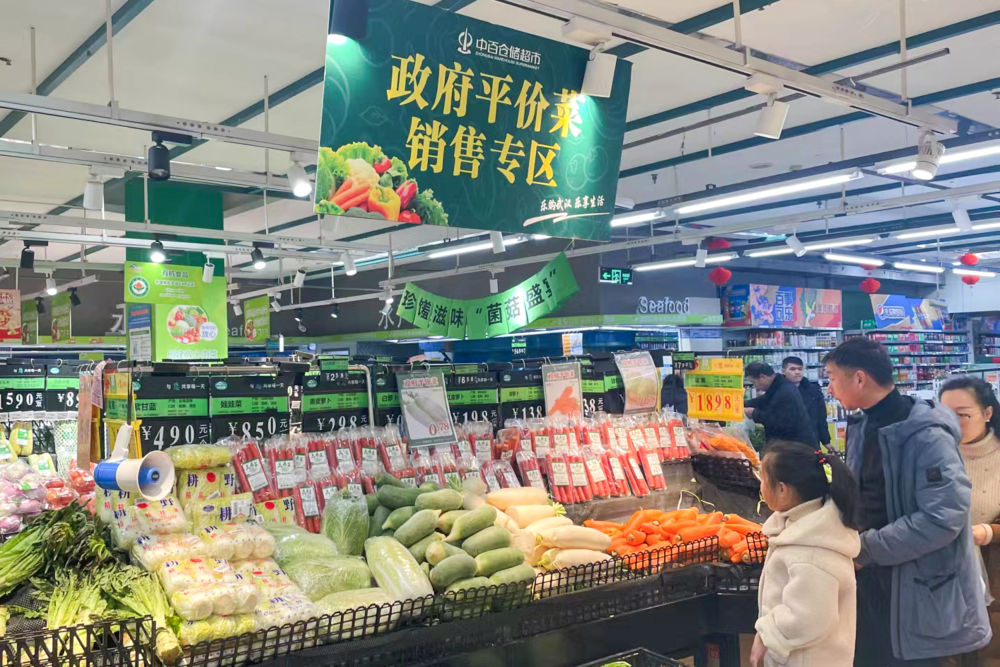 為積極應(yīng)對(duì)近期雨雪冰凍天氣影響,確保武漢市春節(jié)期間蔬菜市場(chǎng)價(jià)格平穩(wěn),保障市民基本生活需求,2月8日至2月12日期間,武漢市政府部署在武商、中百、中商三大商超130余家門(mén)店設(shè)置政府平價(jià)菜銷(xiāo)售專(zhuān)區(qū),銷(xiāo)售大白菜、包菜、白蘿卜、胡蘿卜、土豆5種蔬菜。