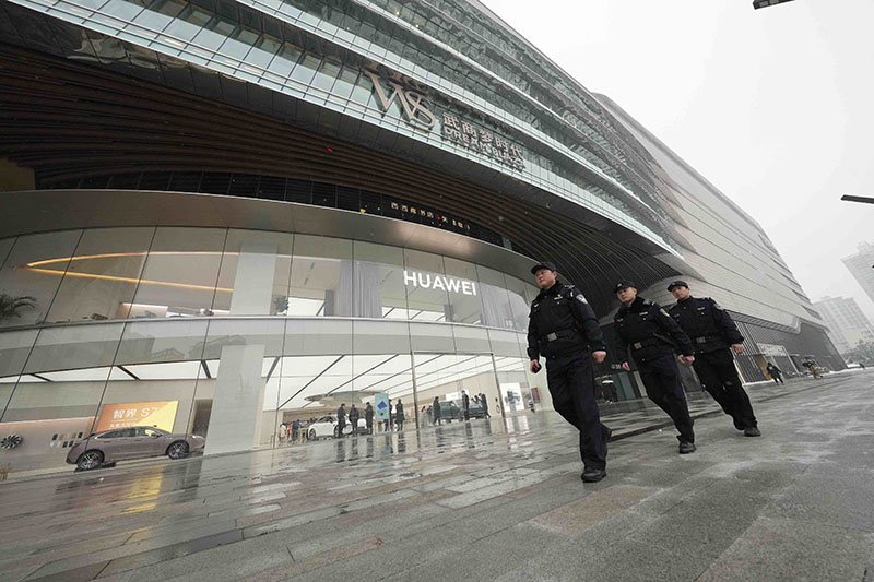 圖為湖北省武漢市公安局武昌區(qū)分局梅苑派出所民警正在武商夢(mèng)時(shí)代廣場(chǎng)外圍開(kāi)展步巡。孫遜/攝