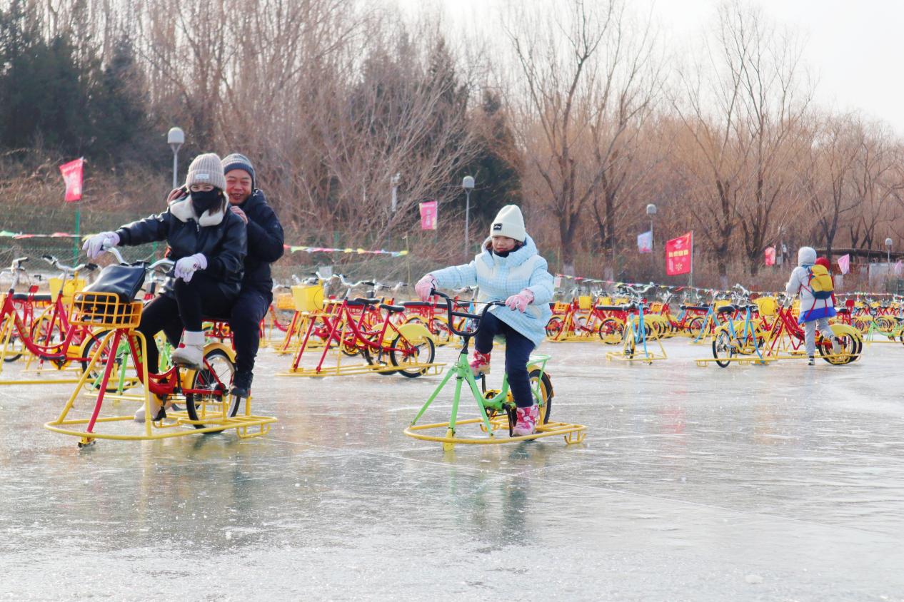 “小時候最喜歡的季節(jié)就是冬天,很懷念當年提著自制的冰車和鐵釬子嬉戲玩耍的場景。”市民林先生說,“如今的冰上自行車、冰爬犁等設計舒適美觀,春節(jié)期間可以與冰雪撞個滿懷,在家門口就能暢享冰上樂趣,小時候的記憶又重現(xiàn)在眼前?!?/p>