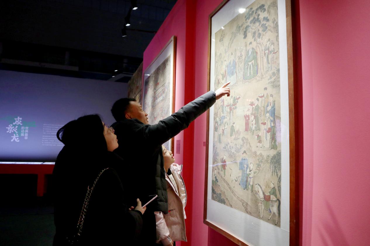 “繪畫、刺繡、雕刻、皮影戲等都是將生活的方方面面進行藝術(shù)化的表達,每幅作品都顯示出超越時間和空間的想象力及浪漫主義?!睋?jù)《龍耀水立方 喜樂過龍年》展覽總策劃、北京航空航天大學新媒體藝術(shù)與設計學院教授顏新元介紹,此次展覽旨在傳遞出繼承發(fā)揚非遺文化不能讓其束之高閣,而是要與群眾吃穿住行等日常生活方方面面建立緊密聯(lián)系,才能讓非遺真正“活”起來,“火”下去的理念。