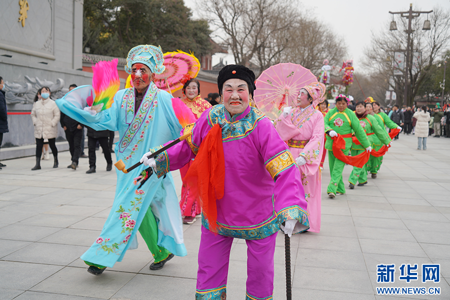 2月19日,在西安市臨潼區(qū)大唐華清城廣場(chǎng),“扭秧歌”表演。王三合攝