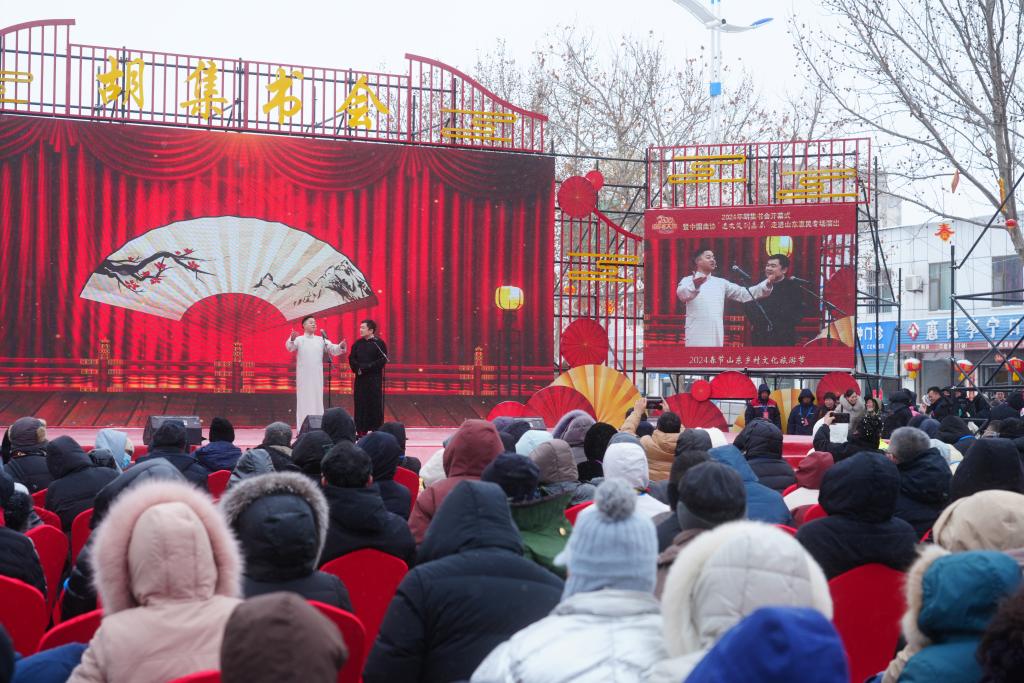 演員正在胡集書(shū)會(huì)現(xiàn)場(chǎng)表演相聲節(jié)目。新華社記者高天 攝