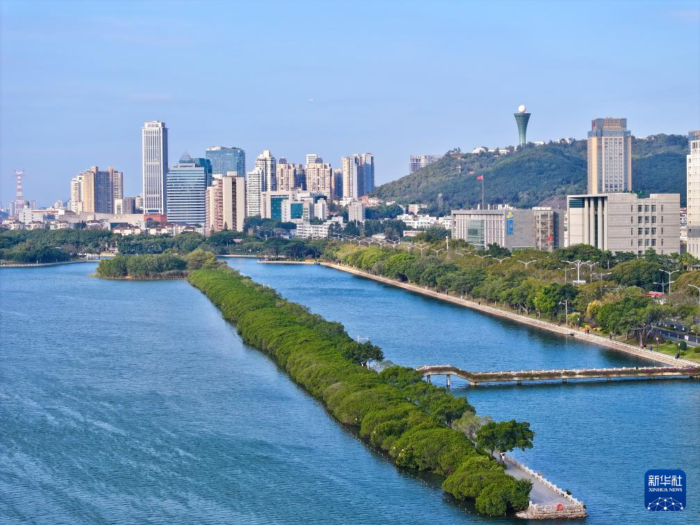 這是1月24日拍攝的廈門筼筜湖湖心島周邊城市生態(tài)景觀(無人機(jī)全景照片)。新華社記者 姜克紅 攝