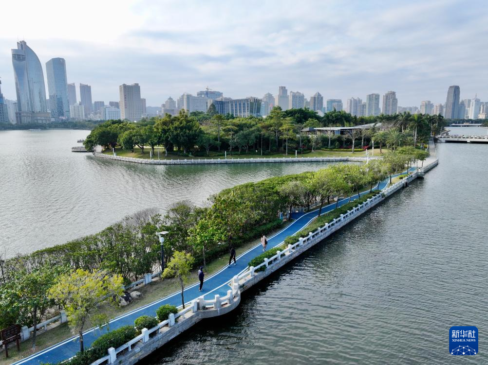這是1月24日拍攝的廈門筼筜湖休閑步道(無人機(jī)照片)。新華社記者 姜克紅 攝