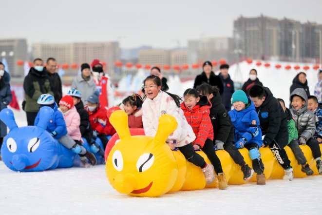 2月1日,小朋友在呼和浩特市東河冰場參與冰雪親子趣味運動會。新華社記者 李志鵬 攝