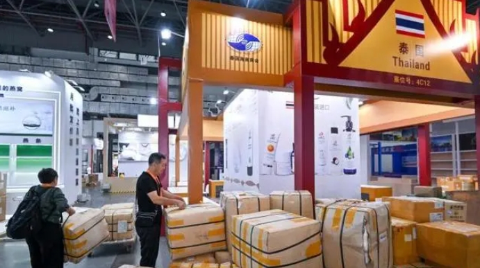 4月10日,第四屆中國國際消費品博覽會參展物品陸續(xù)上架。圖為來自泰國的參展商整備參展商品。中新社記者 駱云飛 攝