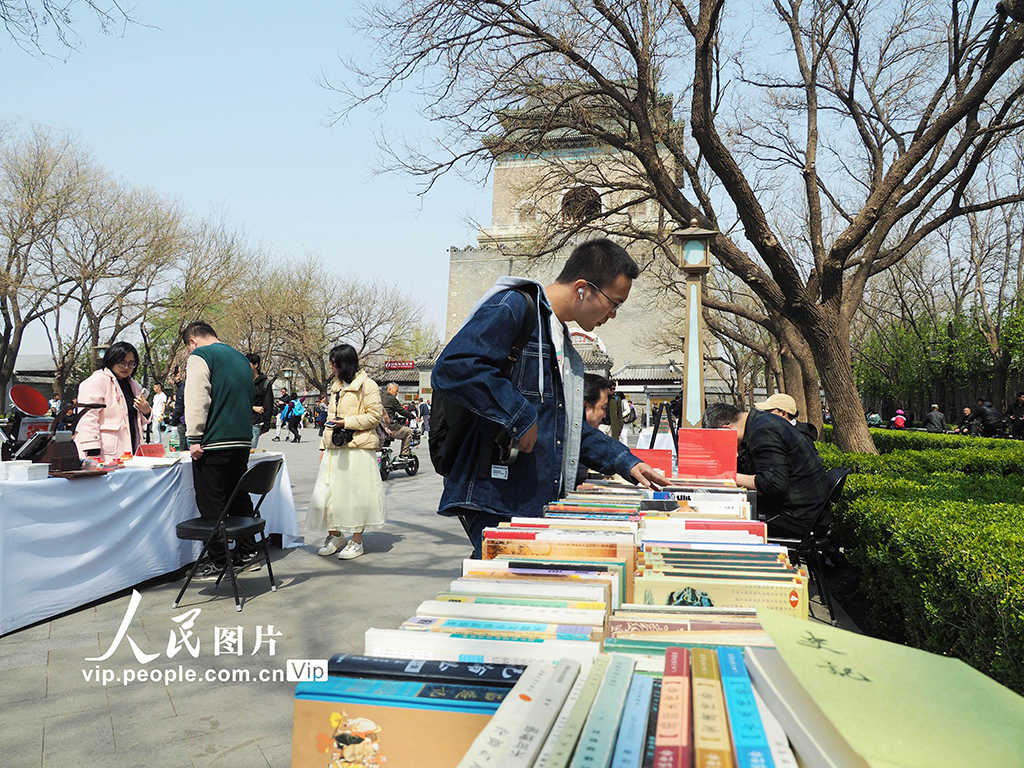 2024年4月5日,北京東城區(qū)首屆“舊書新知 鐘鼓書韻”文化市集在鐘鼓樓廣場舉辦。本次文化市集由東城區(qū)委宣傳部、北京發(fā)行集團主辦,于4月4日開集,共設攤位數(shù)十個,供廣大古舊書愛好者選購圖書。