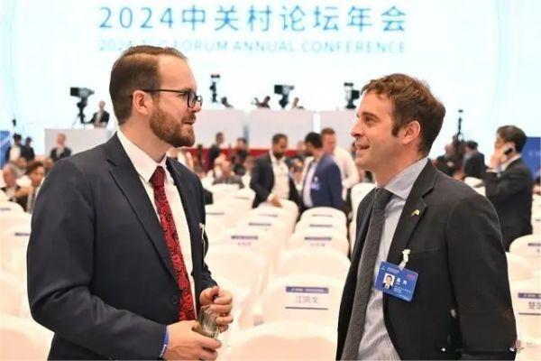 4月25日,2024中關(guān)村論壇年會(huì)在北京開(kāi)幕。圖為與會(huì)嘉賓會(huì)前交流