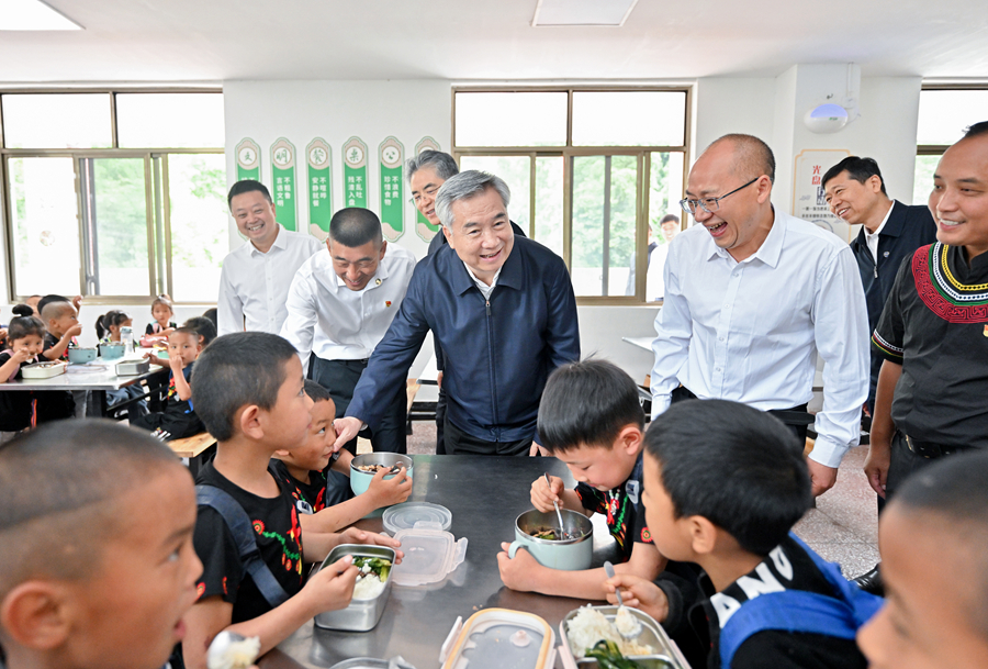 5月29日至6月1日,中共中央政治局常委、中央紀委書記李希到四川調(diào)研。這是5月30日,李希在樂山市馬邊彝族自治縣小谷溪村學??疾?。新華社記者 岳月偉 攝