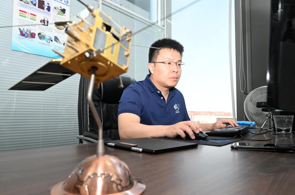 李峰輝在云遙宇航的辦公室內(nèi)辦公(6月4日攝)。