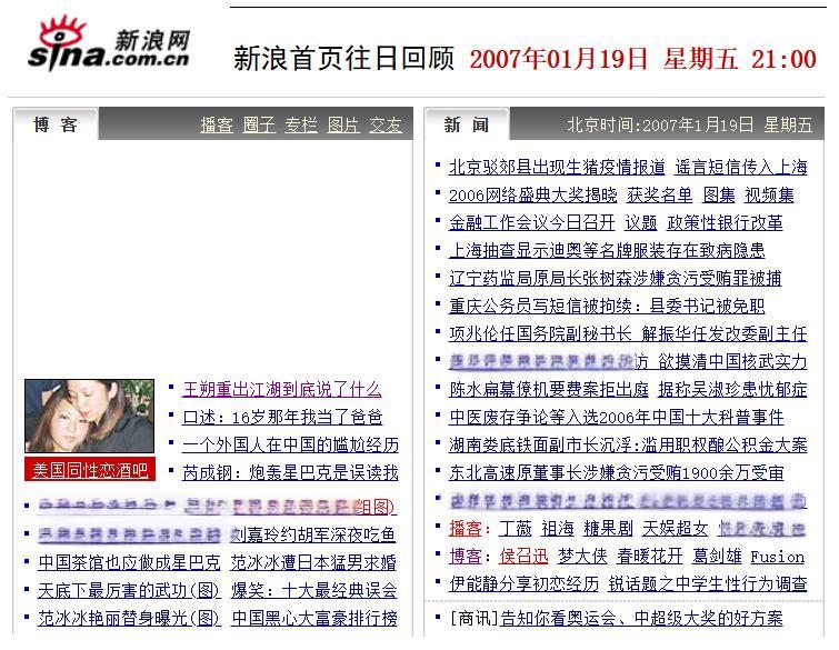 新浪首頁2007年1月19日至21日推薦我的博客。