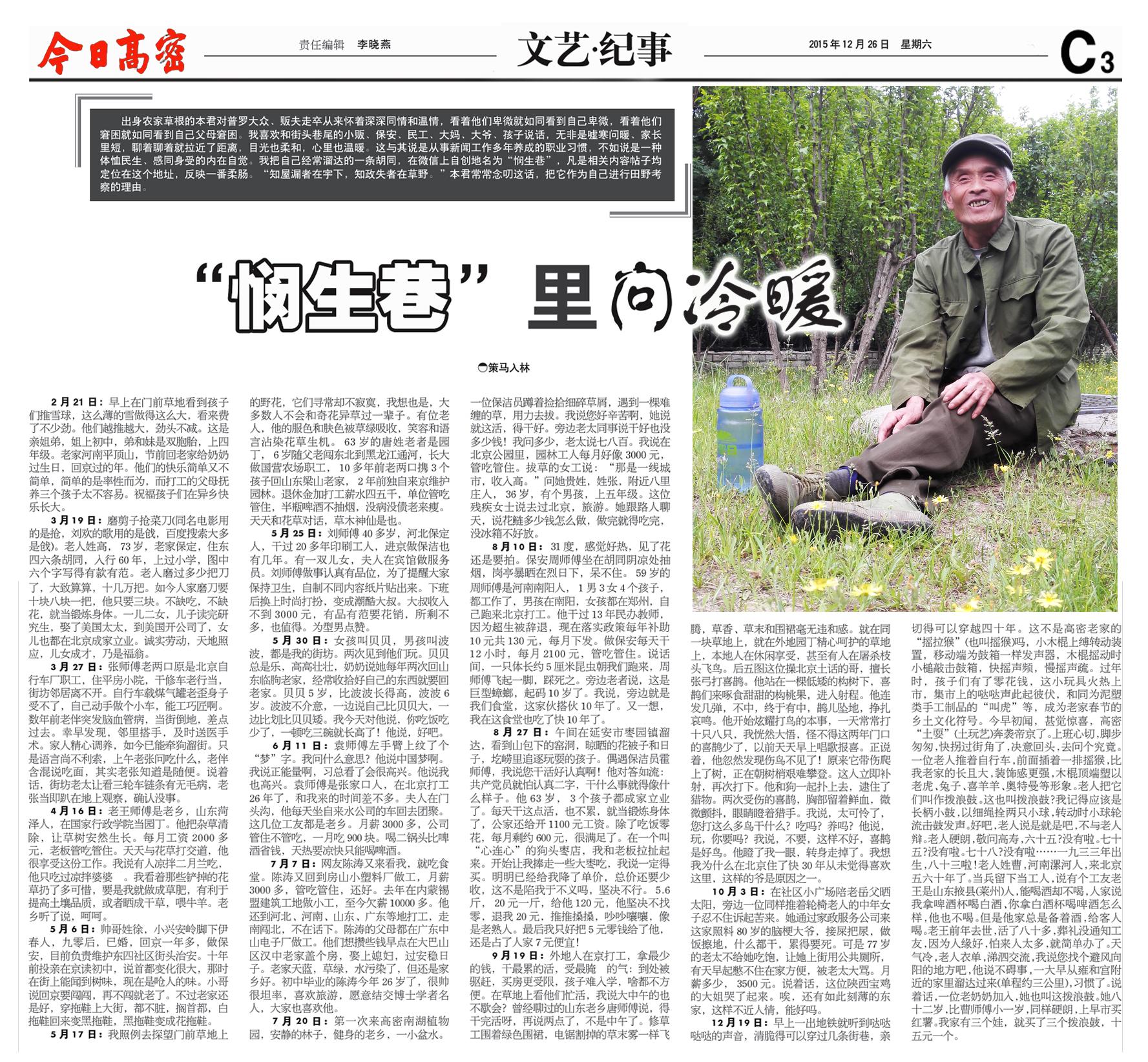 2015年12月26日,《今日高密》刊發(fā)《“憫生巷”里問冷暖》。