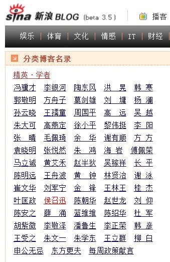 新浪博客分類名錄。