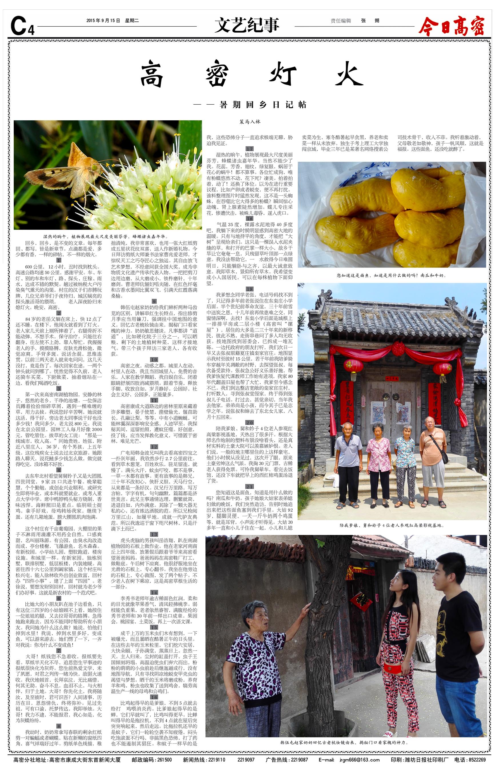 2015年9月15日,《今日高密》刊發(fā)《高密燈火》。