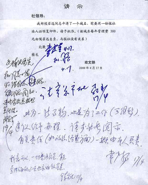 2000年4月17日,有關(guān)請示批件。