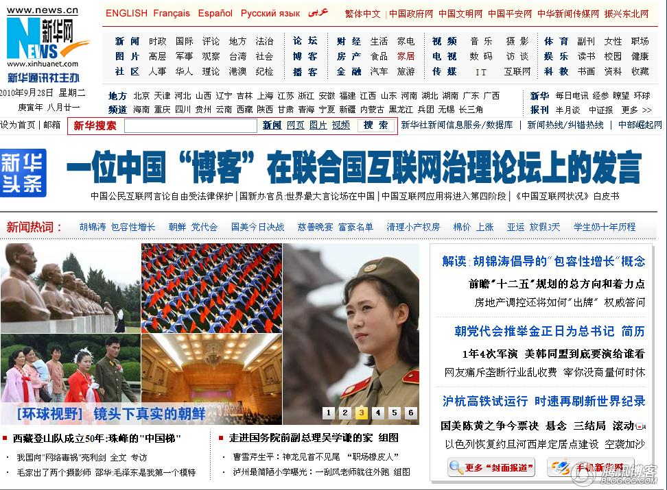2010年9月28日,新華網(wǎng)在首頁(yè)頭條推出《一位中國(guó)博客在聯(lián)合國(guó)互聯(lián)網(wǎng)治理論壇上的發(fā)言》專題。
