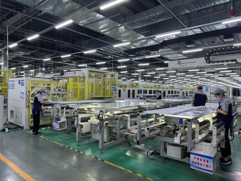 7月31日,工人在山西華儲光電有限公司新建的光伏產(chǎn)品制造車間忙碌。新華社記者 王學(xué)濤 攝