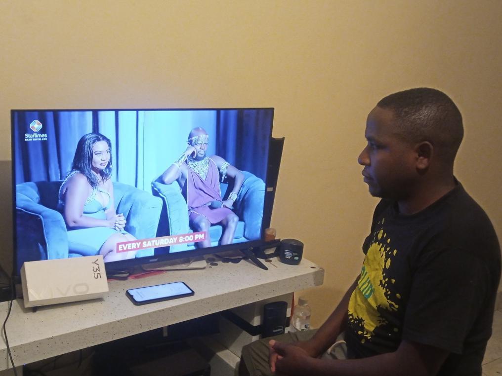 內(nèi)羅畢市民伊萊賈·姆萬(wàn)達(dá)維爾在中企四達(dá)時(shí)代集團(tuán)旗下流媒體平臺(tái)收看綜藝節(jié)目。羅納德·恩喬羅格攝