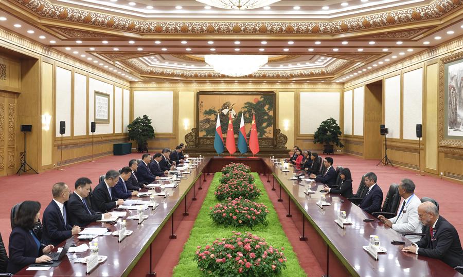 9月6日下午,國家主席習(xí)近平在北京人民大會堂會見來華出席中非合作論壇北京峰會的馬達(dá)加斯加總統(tǒng)拉喬利納。