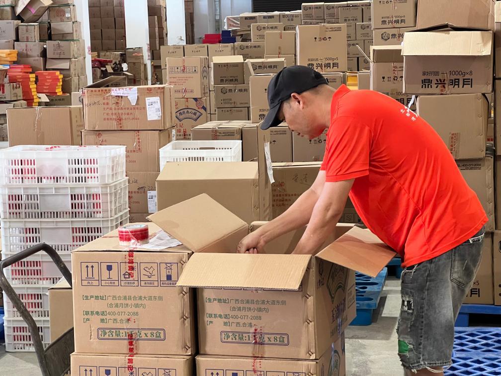 9月12日,在廣西北海市合浦縣的月餅小鎮(zhèn)一處庫(kù)房?jī)?nèi),工人正將月餅打包裝箱。新華社記者張卓文 攝