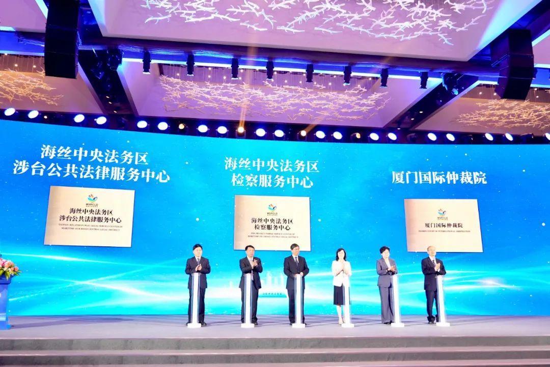 開幕式上,“海絲中央法務(wù)區(qū)檢察服務(wù)中心”“海絲中央法務(wù)區(qū)涉臺(tái)公共法律服務(wù)中心”“廈門國(guó)際仲裁院”揭牌;海絲中央法務(wù)區(qū)2024年度十大成果發(fā)布:海絲中央法務(wù)區(qū)成為法治化營(yíng)商環(huán)境“新名片”、法商融合服務(wù)體系加速完善、辦理一批具有示范效應(yīng)的國(guó)際商事海事典型案件、搭建涉臺(tái)法律服務(wù)新矩陣、警安法務(wù)科技產(chǎn)業(yè)成為法務(wù)區(qū)發(fā)展新引擎、知識(shí)產(chǎn)權(quán)保護(hù)應(yīng)用體系拓維升級(jí)、域外法查明服務(wù)能力實(shí)現(xiàn)新突破、全國(guó)首個(gè)反壟斷審查合規(guī)輔導(dǎo)中心落地運(yùn)行、設(shè)立全國(guó)首個(gè)檢察影視孵化示范平臺(tái)、打造涉外法治人才培育基地;2024年“一帶一路”法律服務(wù)典型案例發(fā)布。